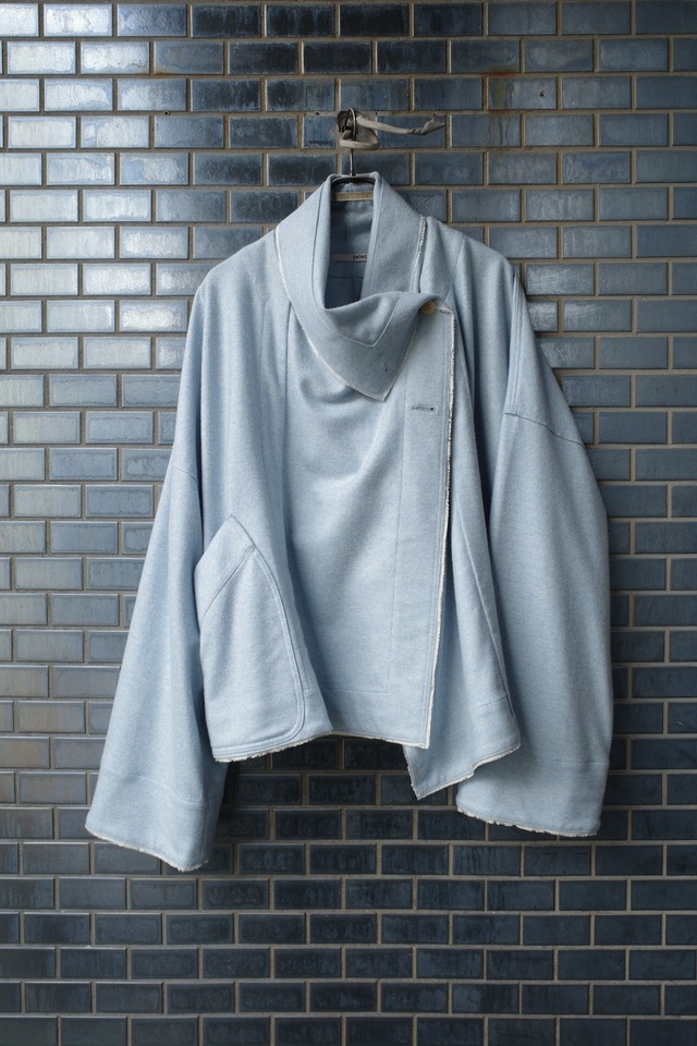 ◼️DESIGN 細番手ファインウールを洗いにかけ、軽く柔らかな印象に仕上げたハーフコ丈のコート。 ボタンを留める、ホールの位置を変えることでネックの高さに変化が生まれる。 首周りを包みこむ印象を与えられる一つ目のボタンホール。 首周りのルーズさが解放的な印象を生み出す二つ目のボタンホール。 ドレープの効いた動きを演出できるホールを使わない着方。 お客様のその日の気分、温度、シチュエーションで多彩な変化を生み出せる使い勝手の良い一枚。 ◼️MATERIAL WOOL80%,NYLON16%,OTHER4% ◼️COLOR SAX ◼️SIZE FREE