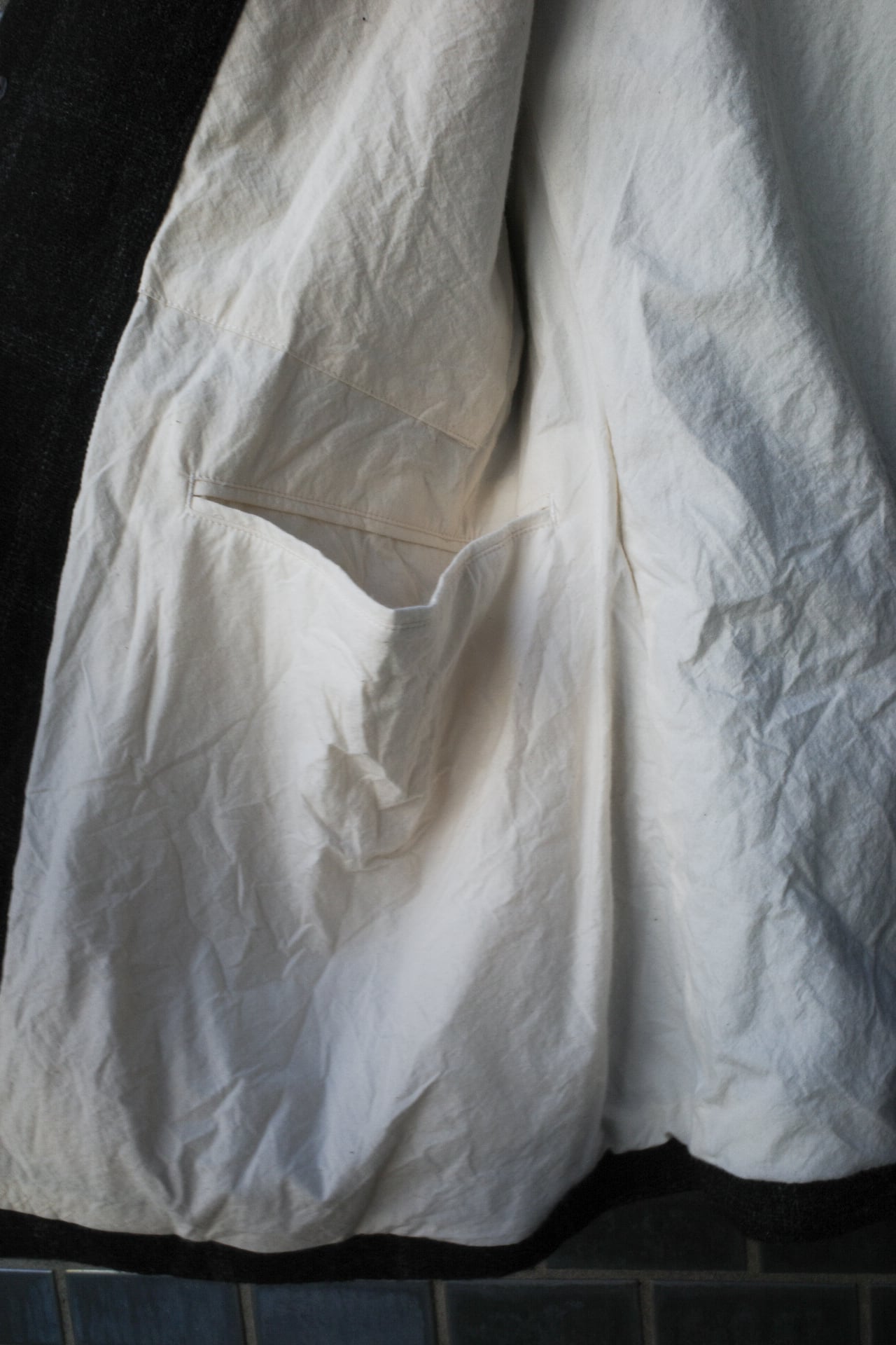 袖裏はキュプラ。袖通しは軽快で、クラシックな見た目なのに現代的着方の選択肢を広げてくれる。