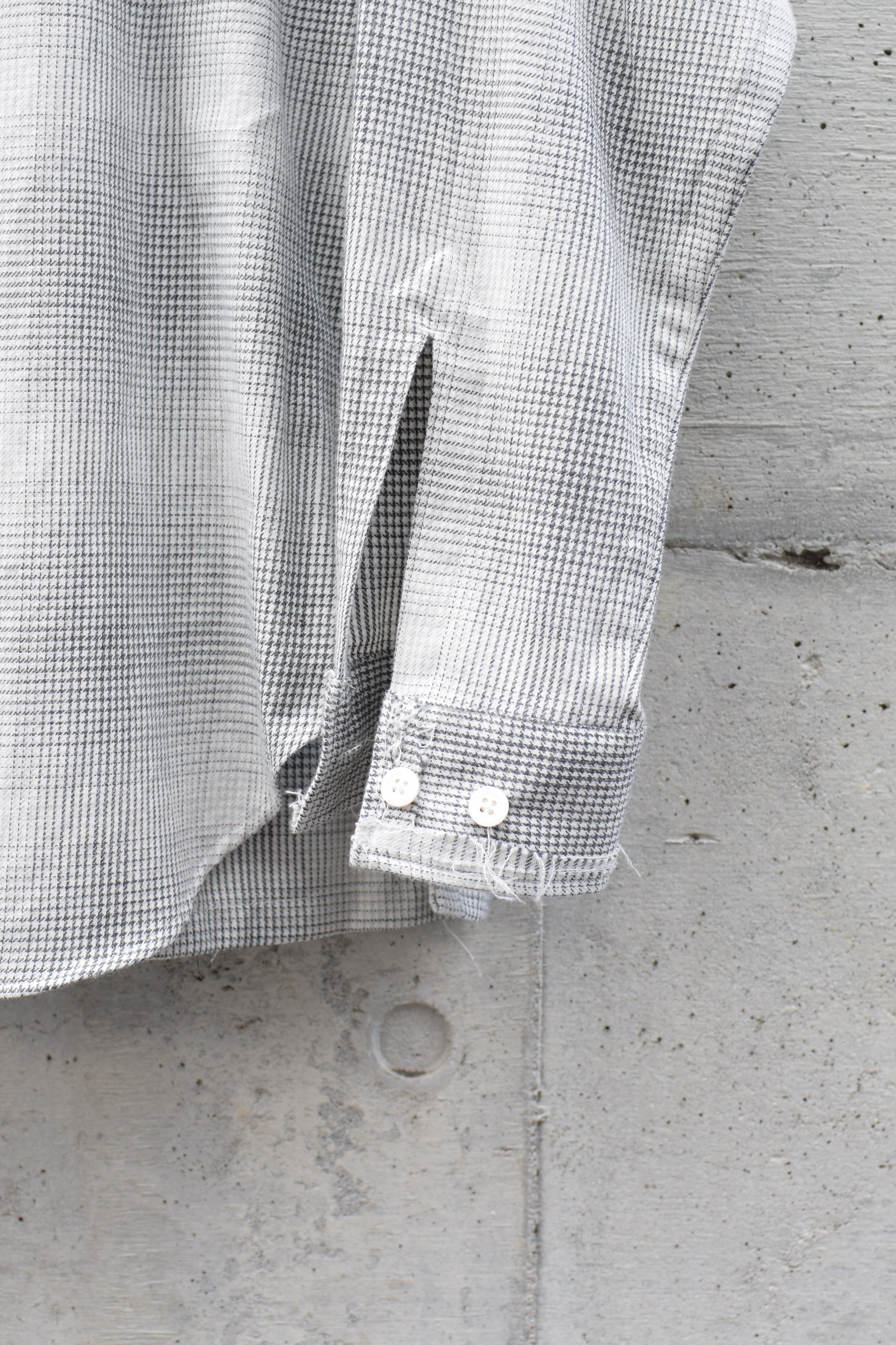 各部にラフな仕上げが施されており、一見仕立ての良い綺麗なシルエットのシャツだが前身、後身でカッティングが違う仕上げとなっており見る角度で印象が全然違うのも魅力的だ。