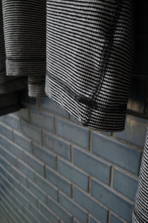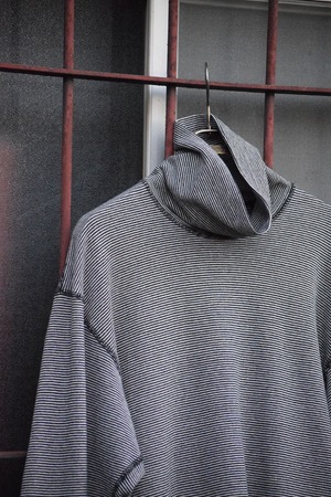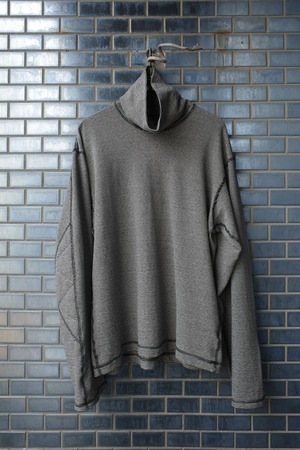 タートルネックはネック部分を折り着用することが、スタンダードだがこちらは折らずに首元の負荷で自然にネックが潰れる着方もおすすめしたい。