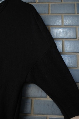 ショルダーのポジションがやや下目な位置なことで着用した際の、ウールカットソーではあるあるなピタッとくるサイズ感が軽減される。