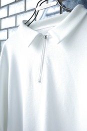 シルエットは身幅が広めで着丈が短い60年代のスタイルを踏襲しています。一見するとクラシックなアイテムに見えますが、斜めになったファスナーは左右で開き具合が異なるため、胸元にニュアンスが生まれるところもポイントです。