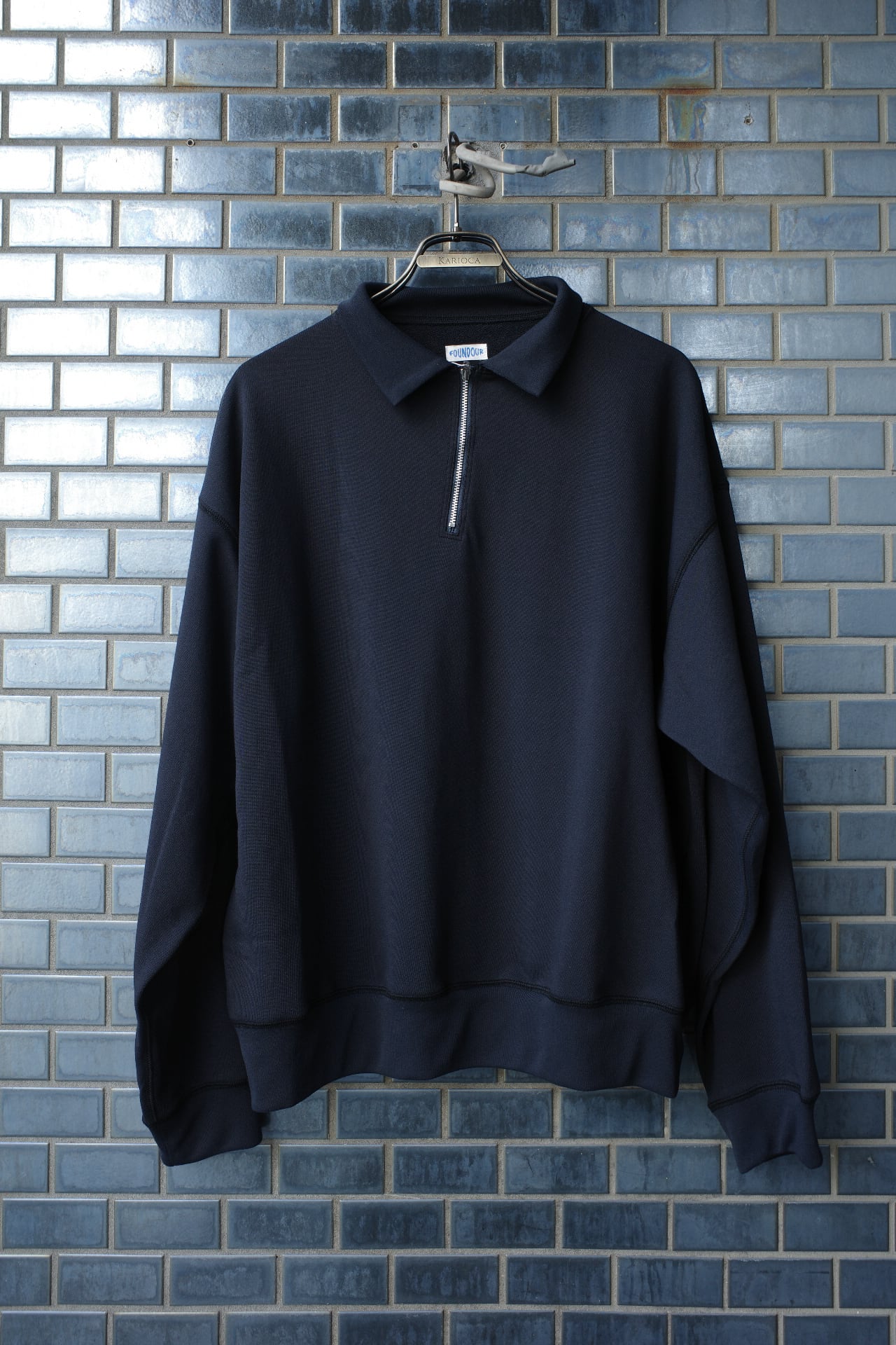 〈FOUNDOUR〉では、そうした経年変化にフォーカスしながら、あえてポリエステル100%の生地で再現しました。重くて乾きにくいコットン製のスエットの問題点を解決し、軽い着心地で速乾性の高いアイテムに生まれ変わっています。