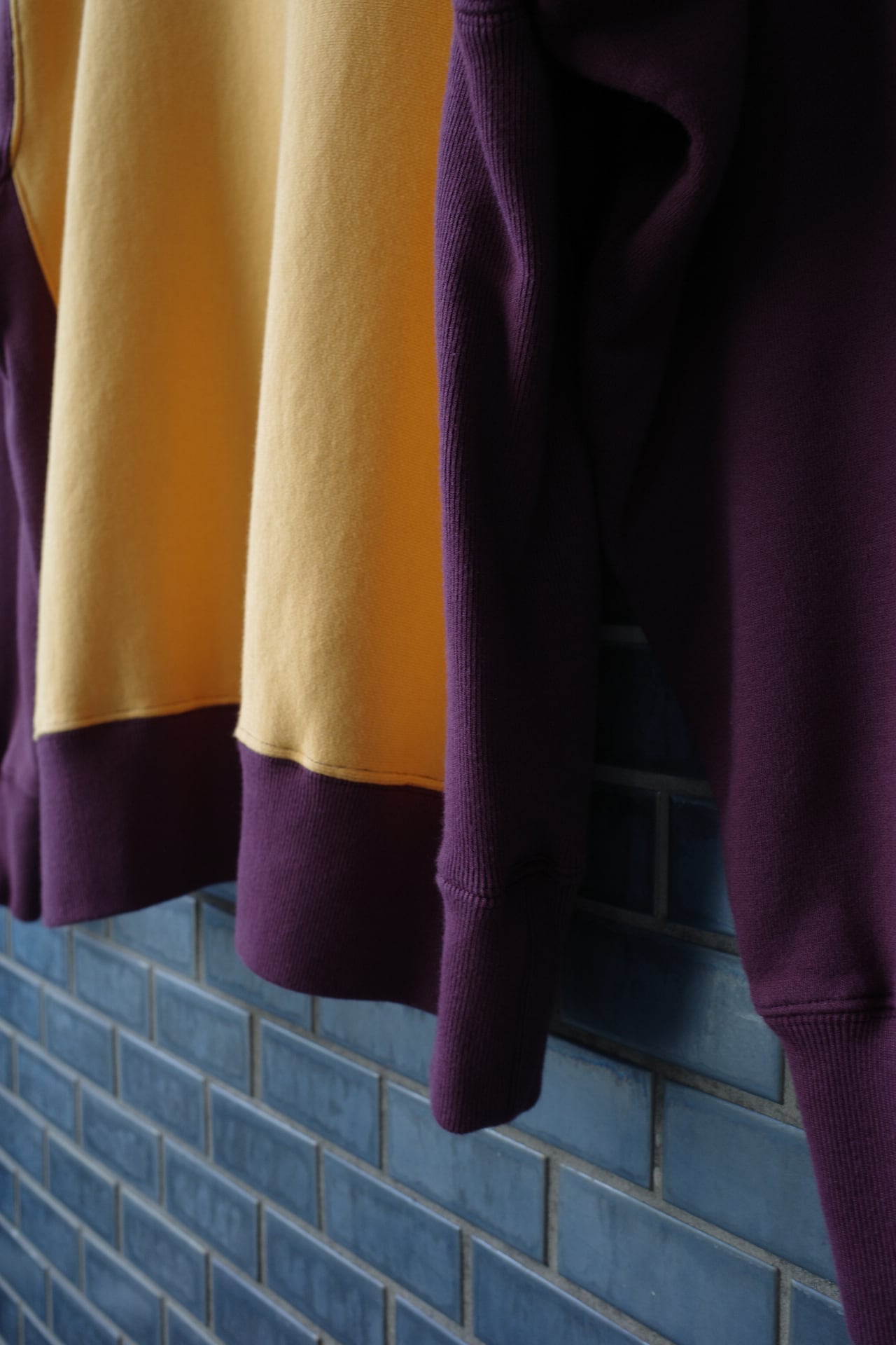 単色無地のものが一般的ですが、たまにパネル配色の個体を古着屋で見かけます。おそらく90年代のもので、そうなった経緯に関しては諸説あるのですが、営業用のサンプルとして1枚の中にいろんな色を組み合わせていたというのが有力。だから販売用ではなかったと言われています。