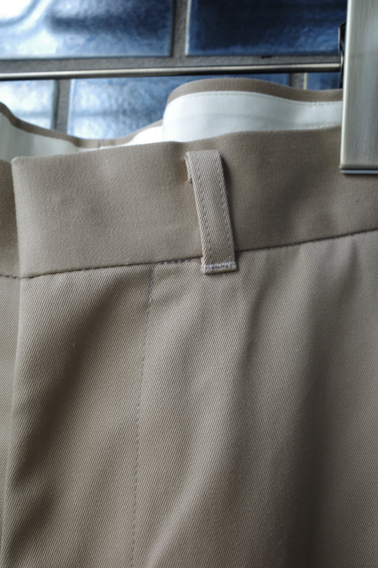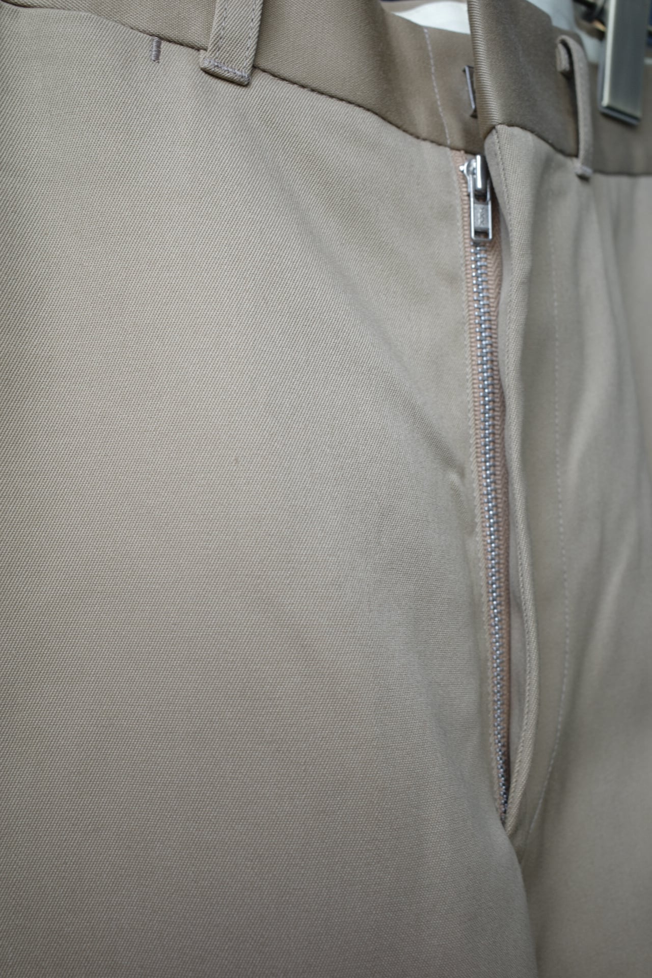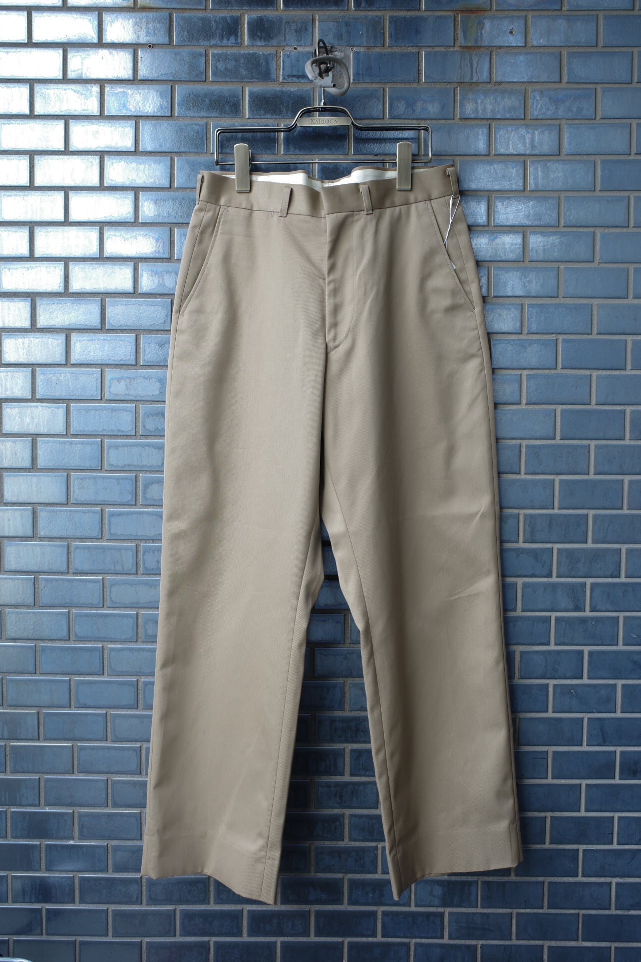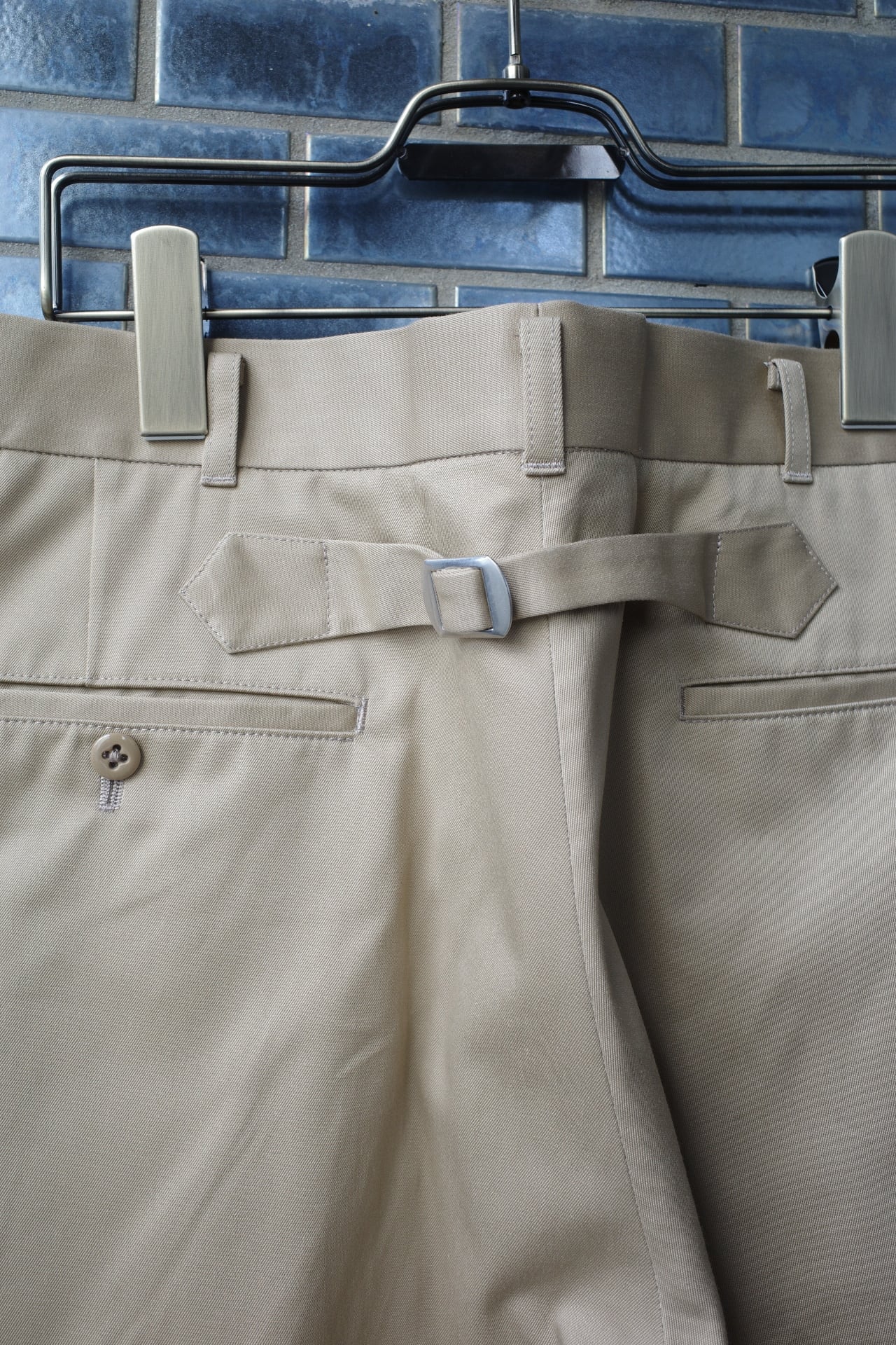 前回よりも厚手のしっかりとしたTC素材を使用しており、よりワーク然としたアイテムに仕上がりました。とはいえ、元ネタとなるワークパンツのスラックスのような美しさや、片玉縁のポケットやシンチバックといったクラシックなディテールも健在。