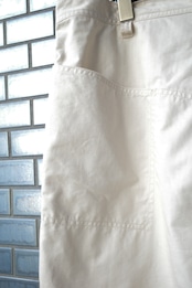 〈FOUNDOUR〉ではそれをコットンのリップストップ生地に置き換え、元はワークだけど、不思議とミリタリーパンツにも見える1本へと生まれ変わらせました。