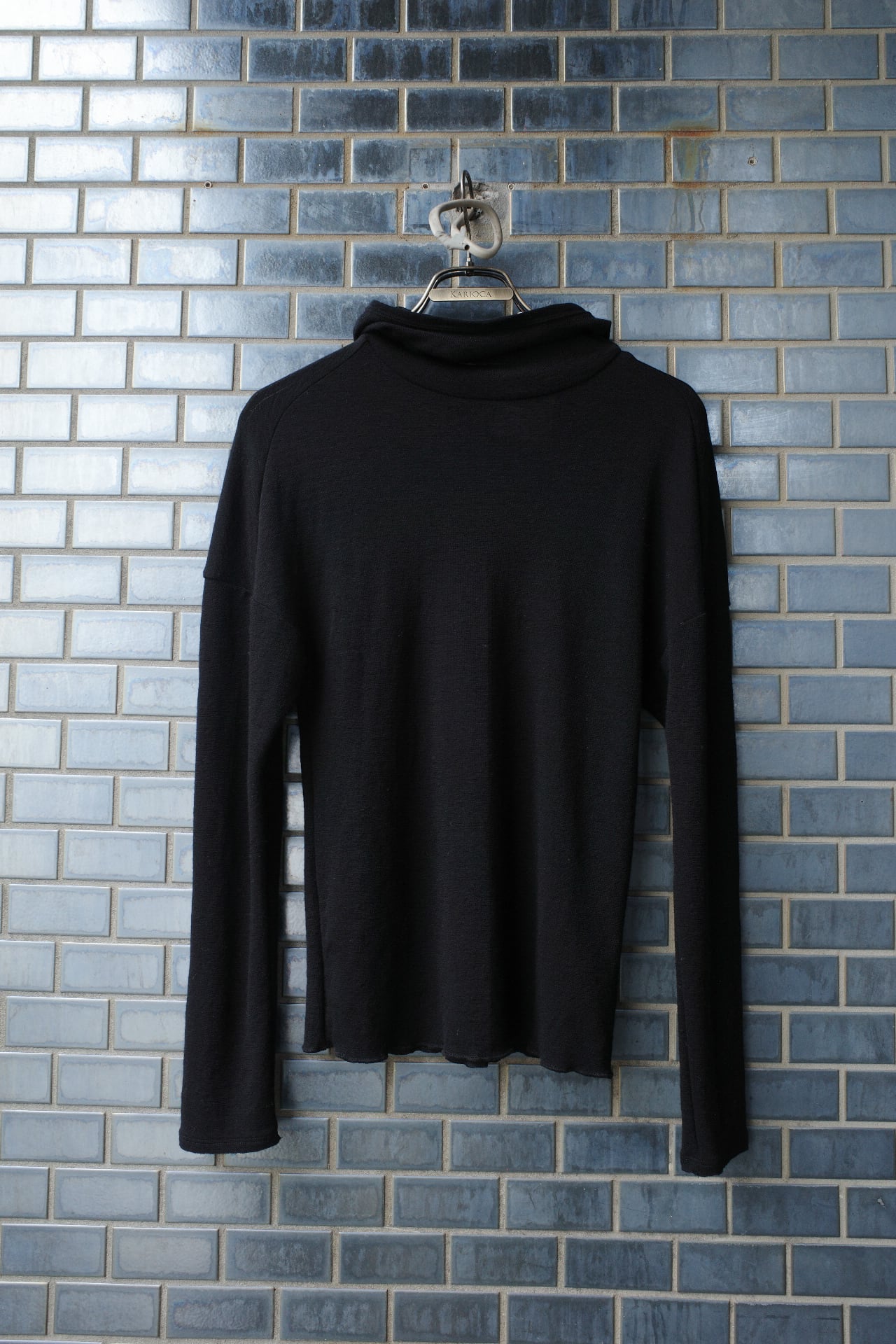 ショルダーのポジションがやや下目な位置なことで着用した際の、ウールカットソーではあるあるなピタッとくるサイズ感が軽減される。