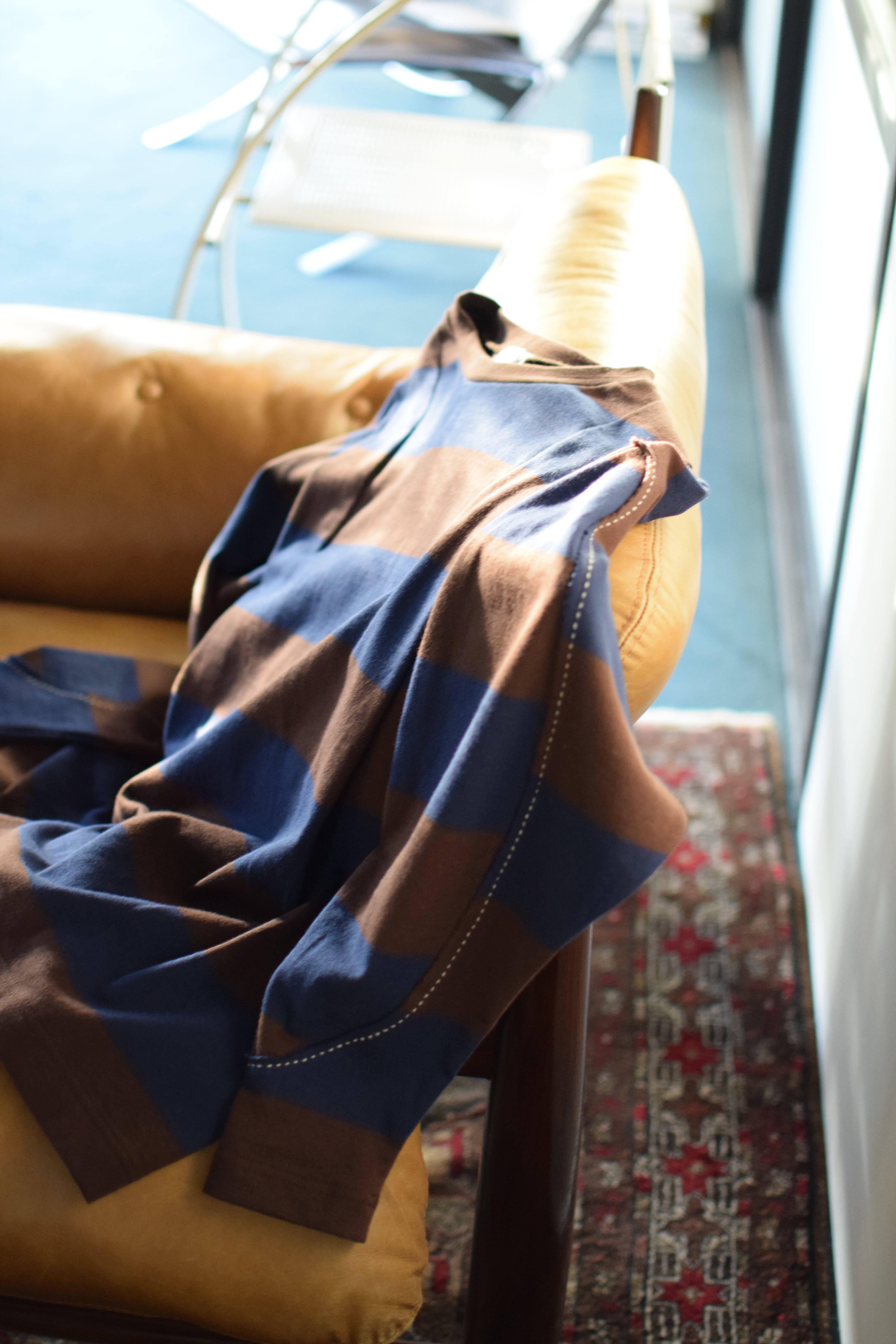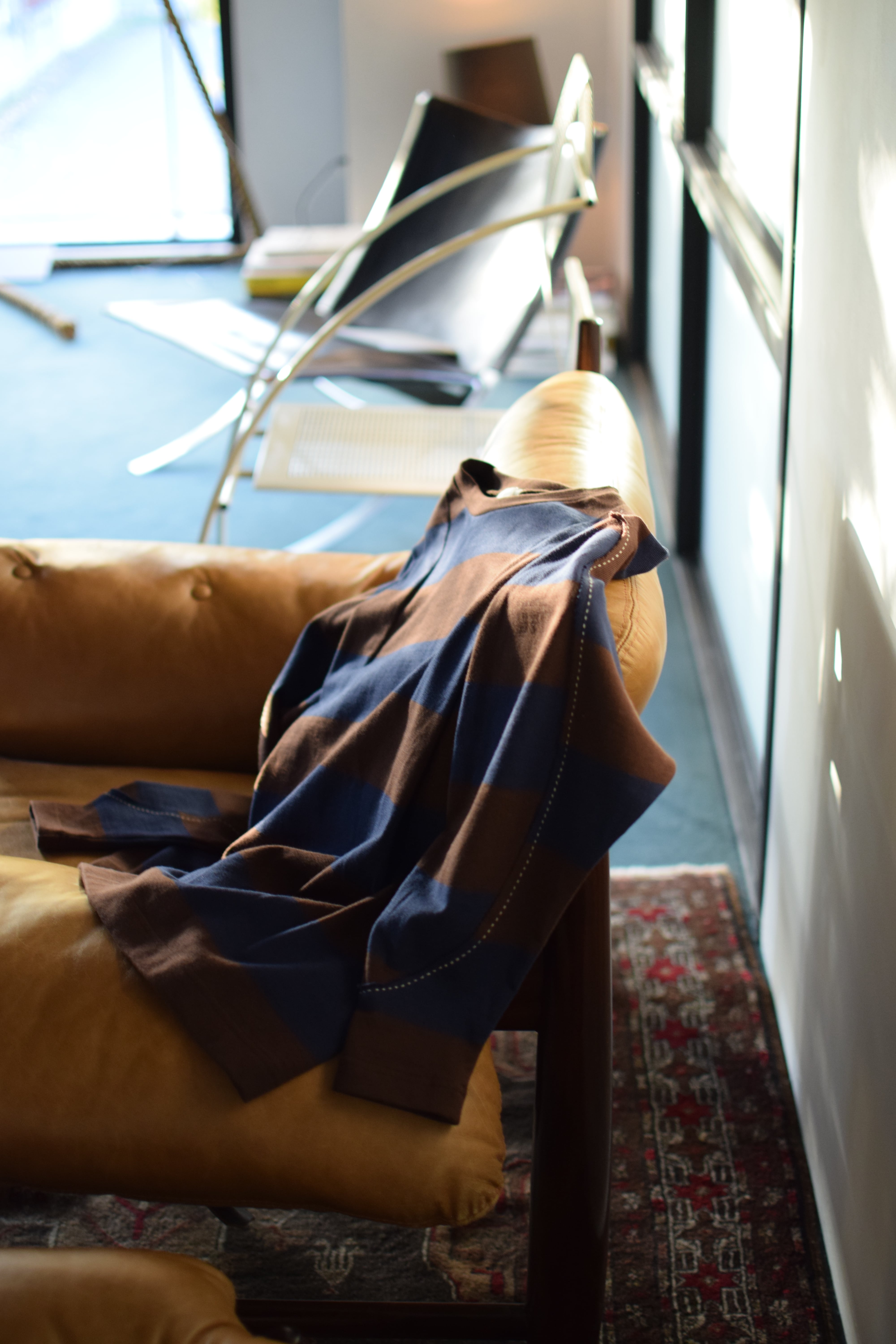 ざっくり切り抜かれたエルボー部分には、アクセントにもなる太目のステッチ。