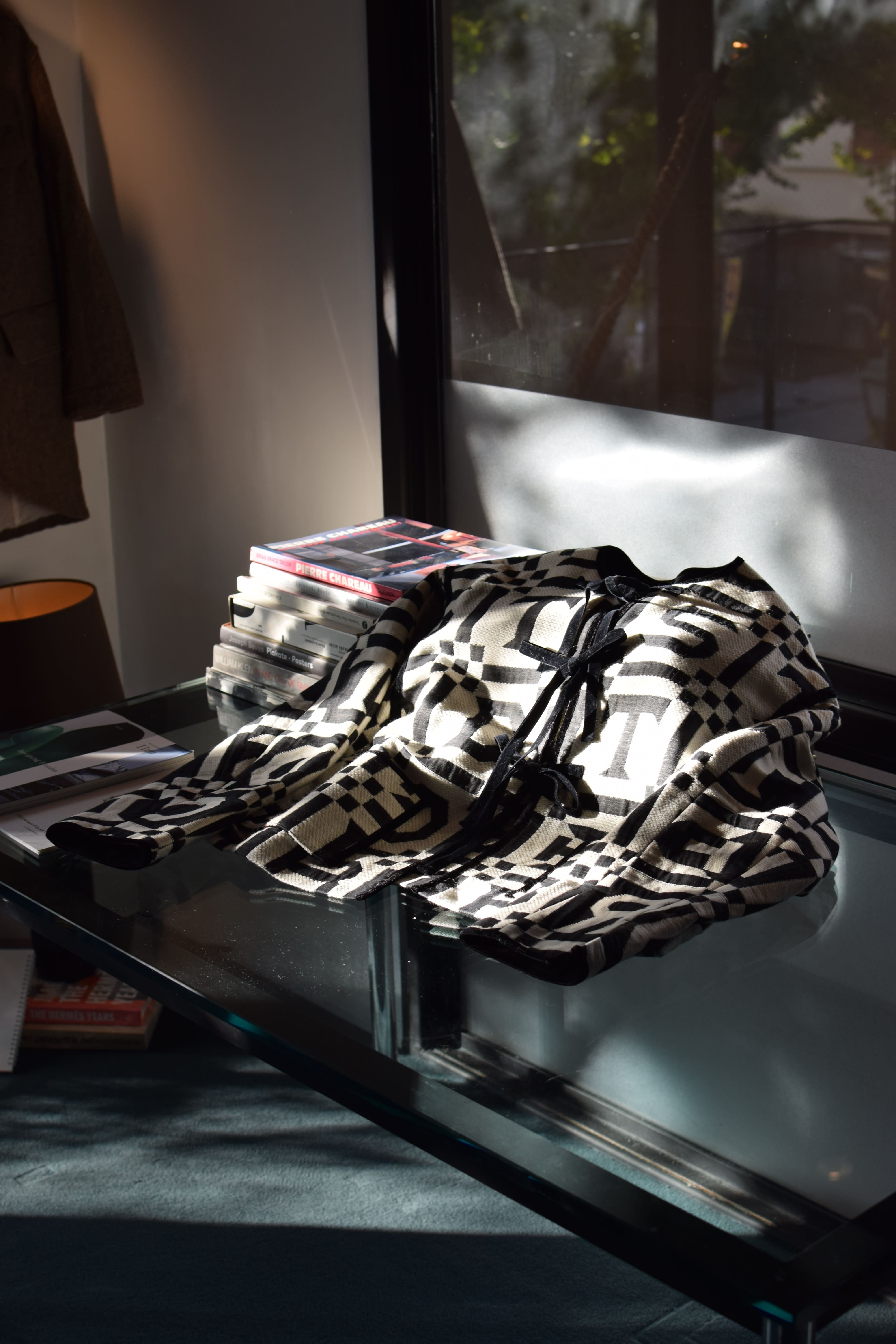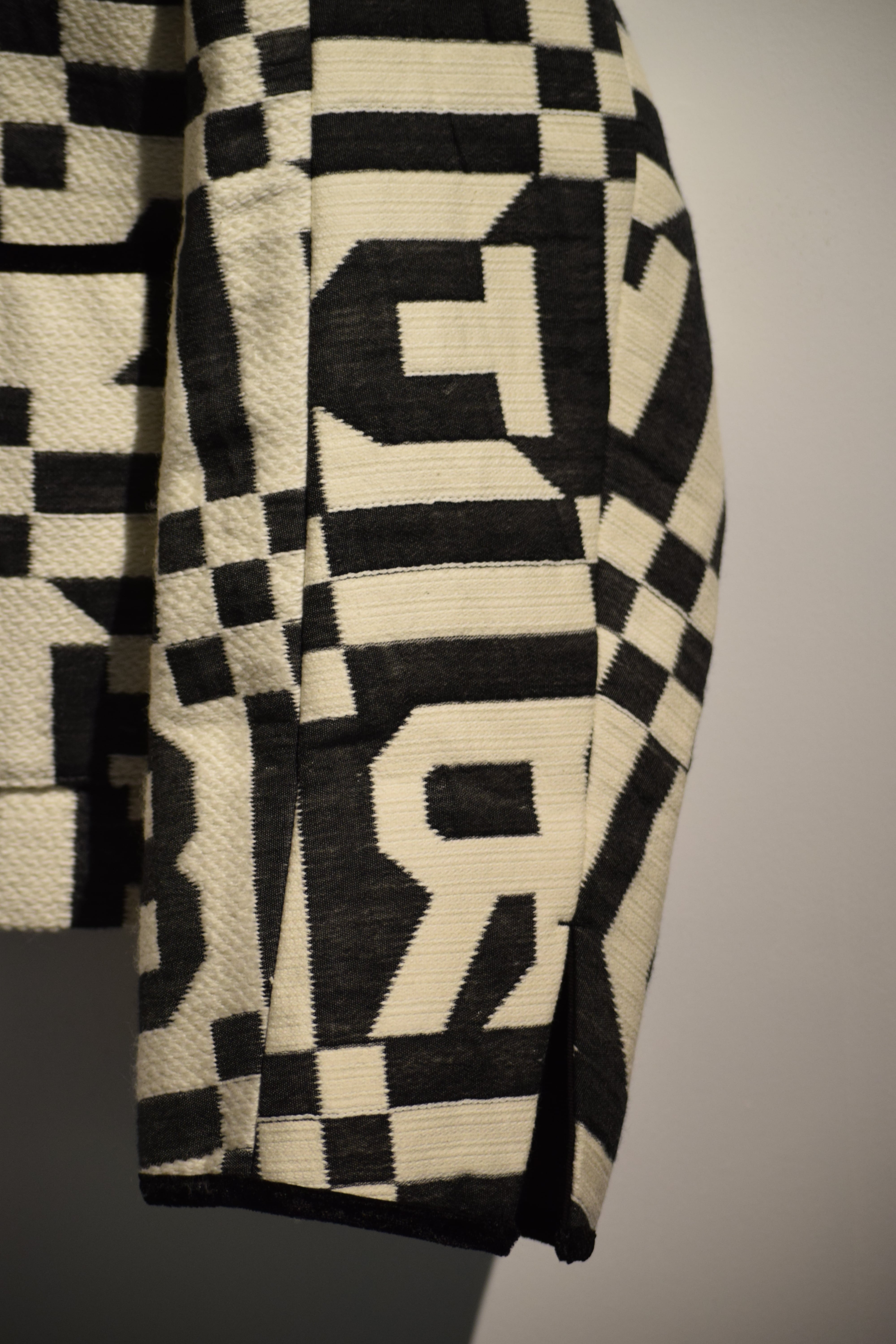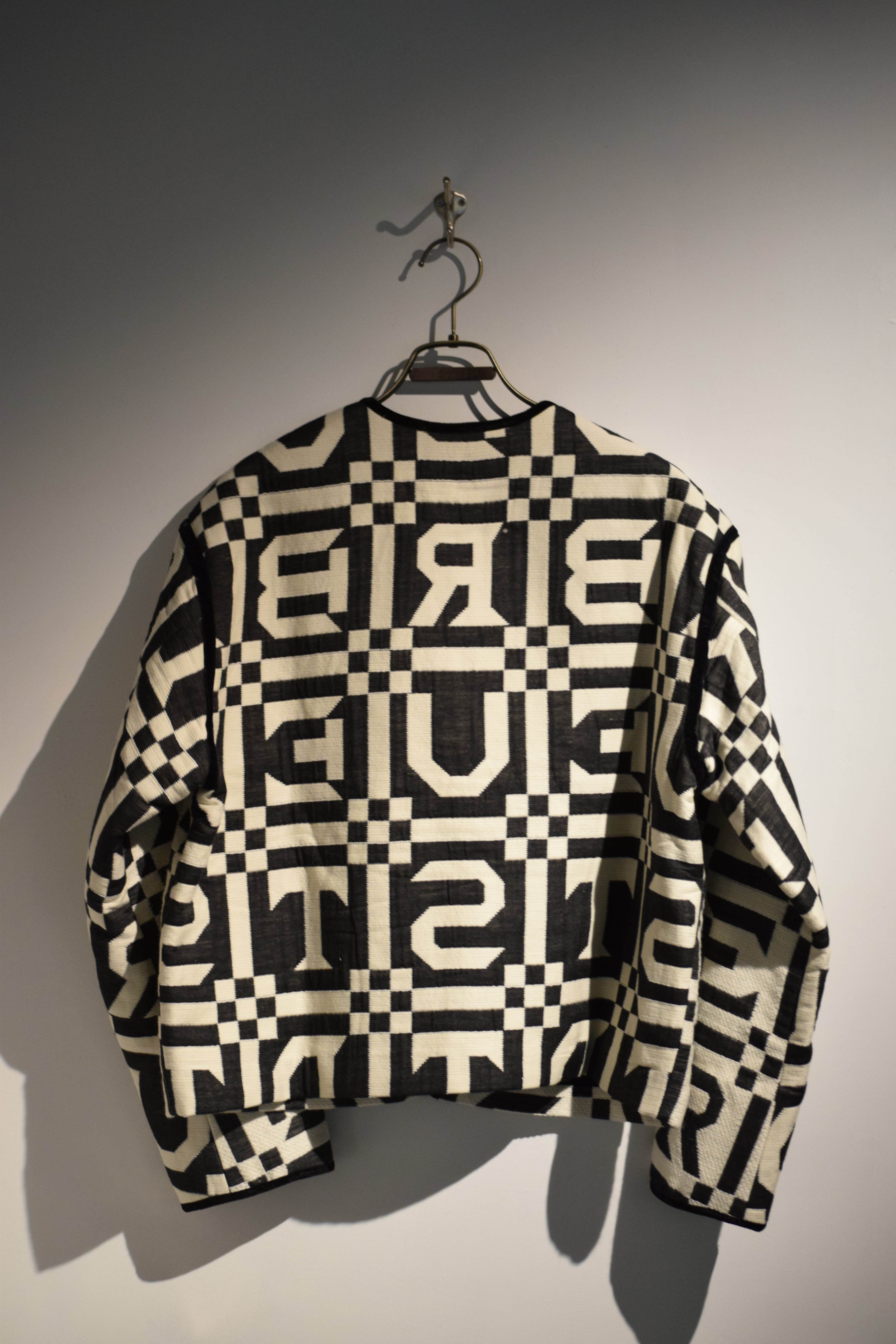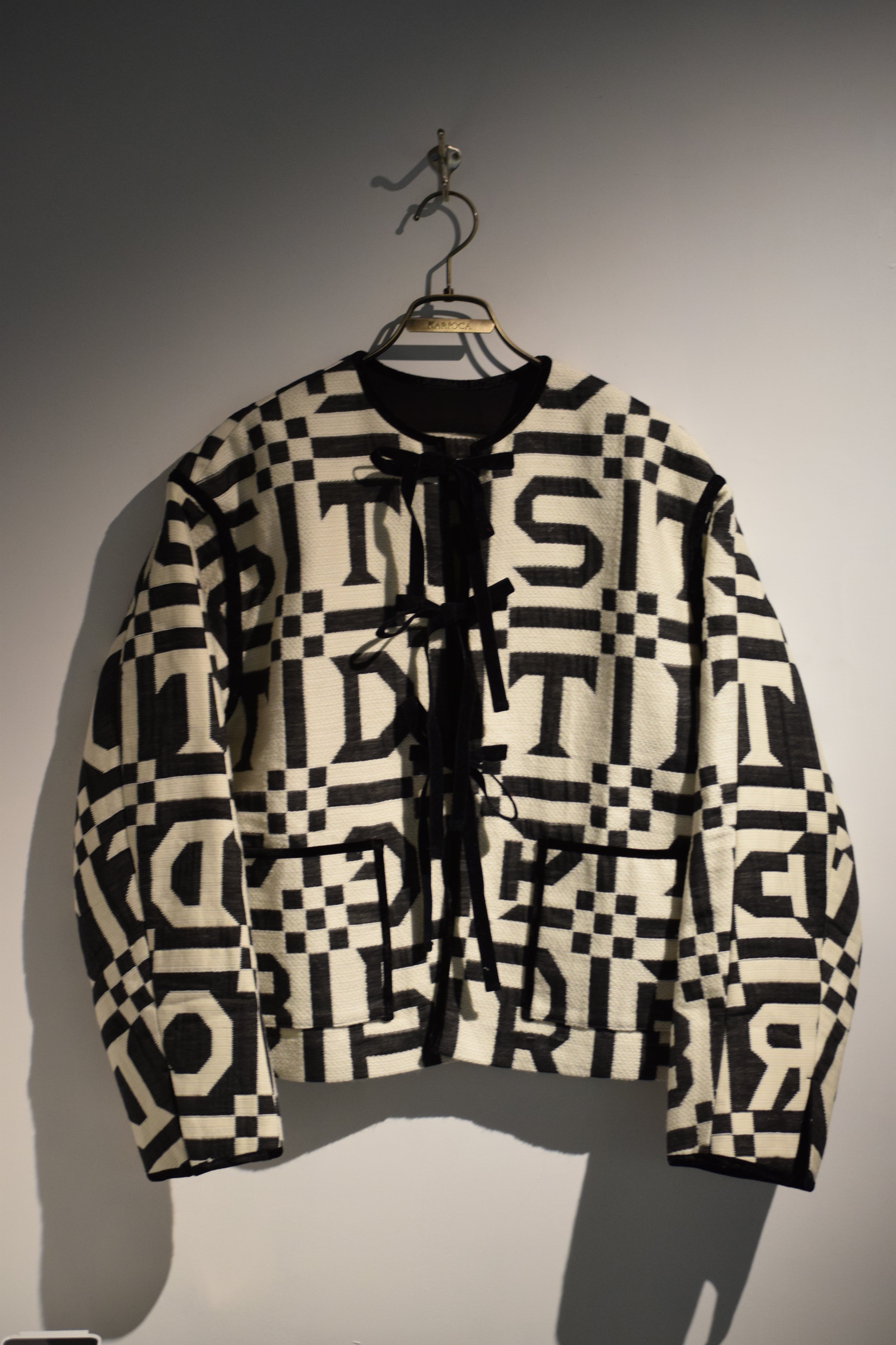 「DOBETTRUS」の英文字が総柄使いされたチャイナ風ジャケット。