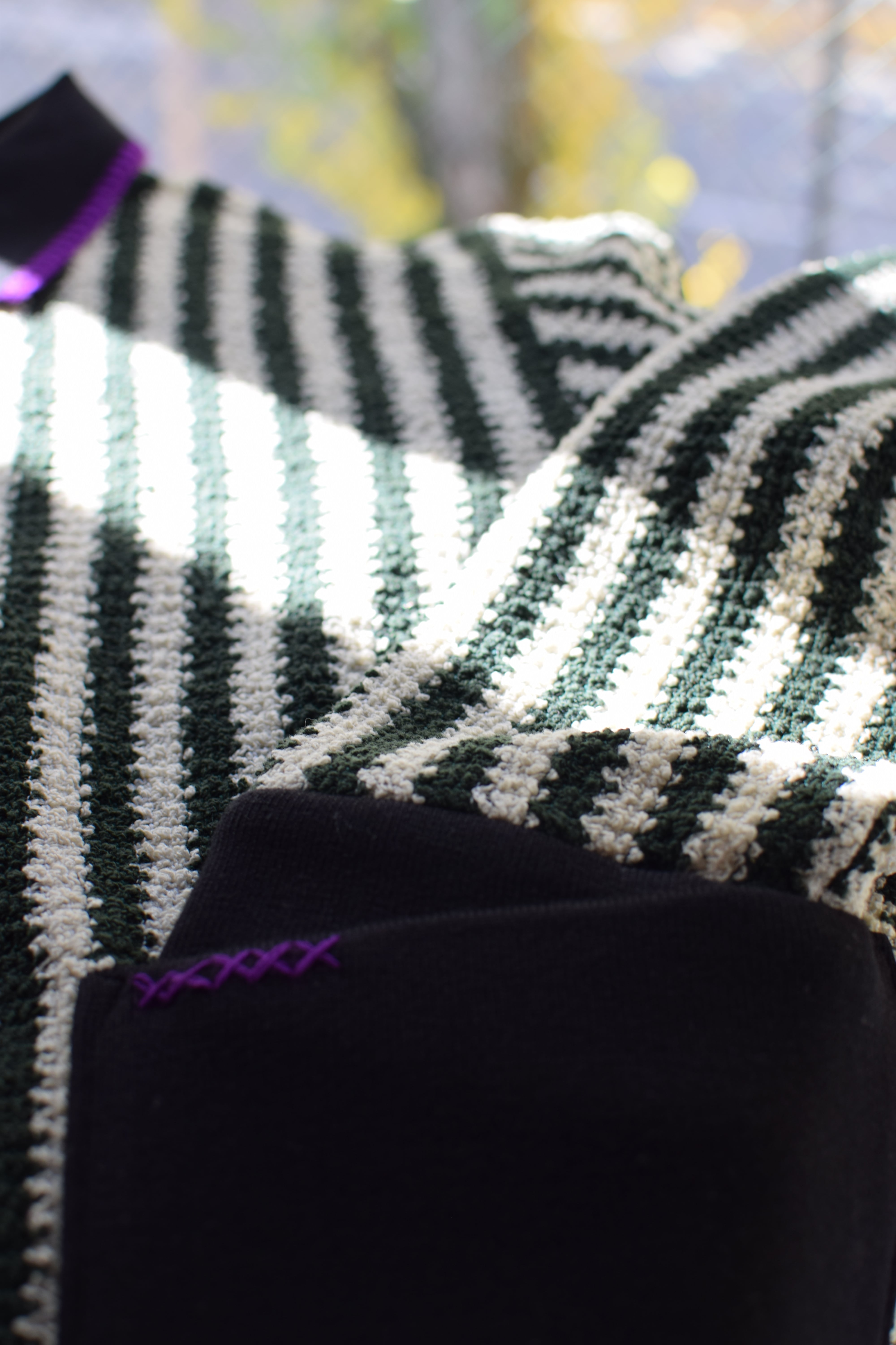 細部に散らつくパープルの糸はアクセントとしても顔を出しながらも、どこか馴染み良いバランスの配分。