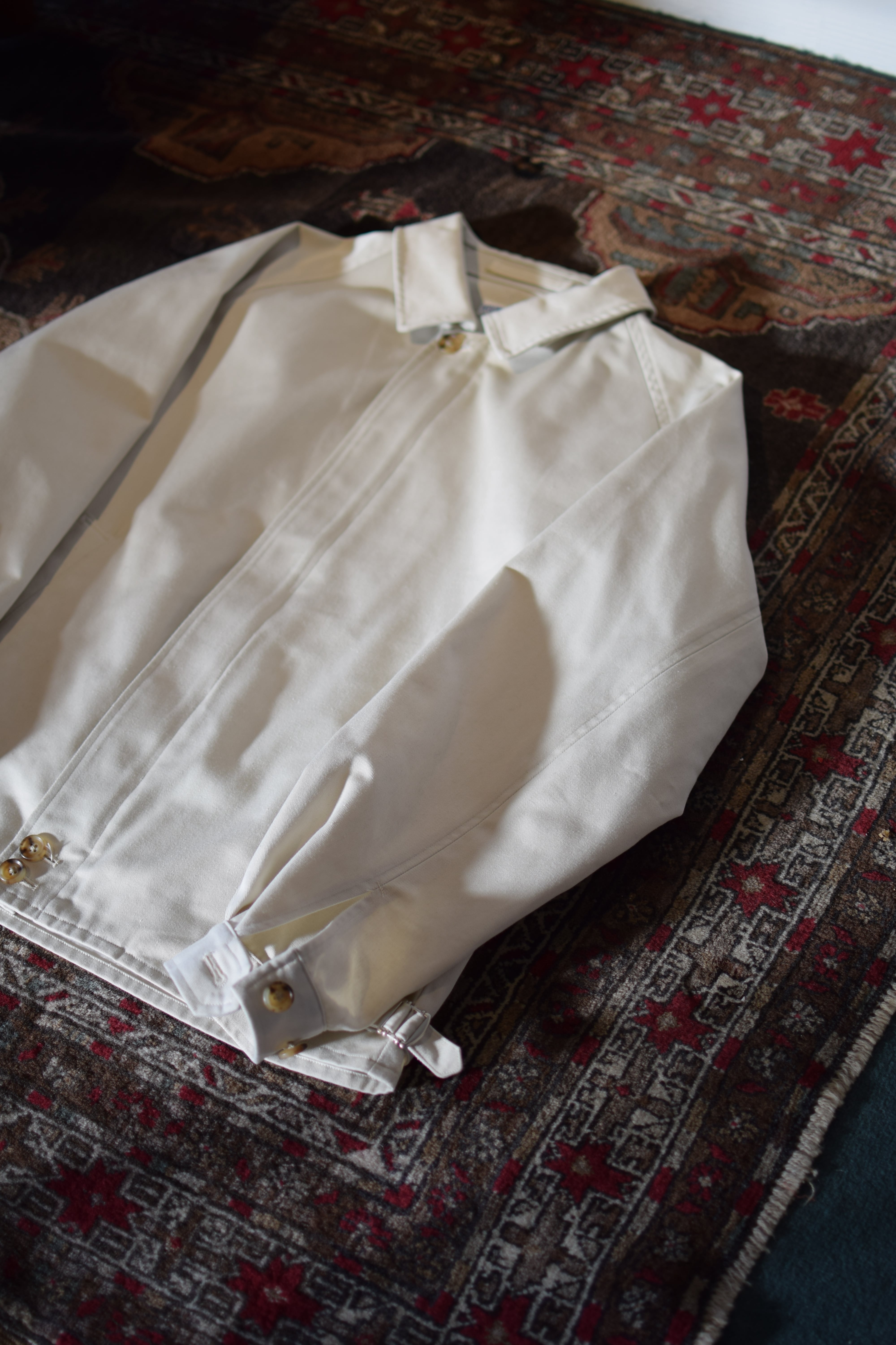 デニムやチノと合わせたアメリカンなスタイルはもちろん、スラックスや革靴を合わせたブリティッシュな着こなしにも自然に馴染みます。日常使いから少し背筋を伸ばしたいシーンまで対応する、大人のための軽アウターです。
