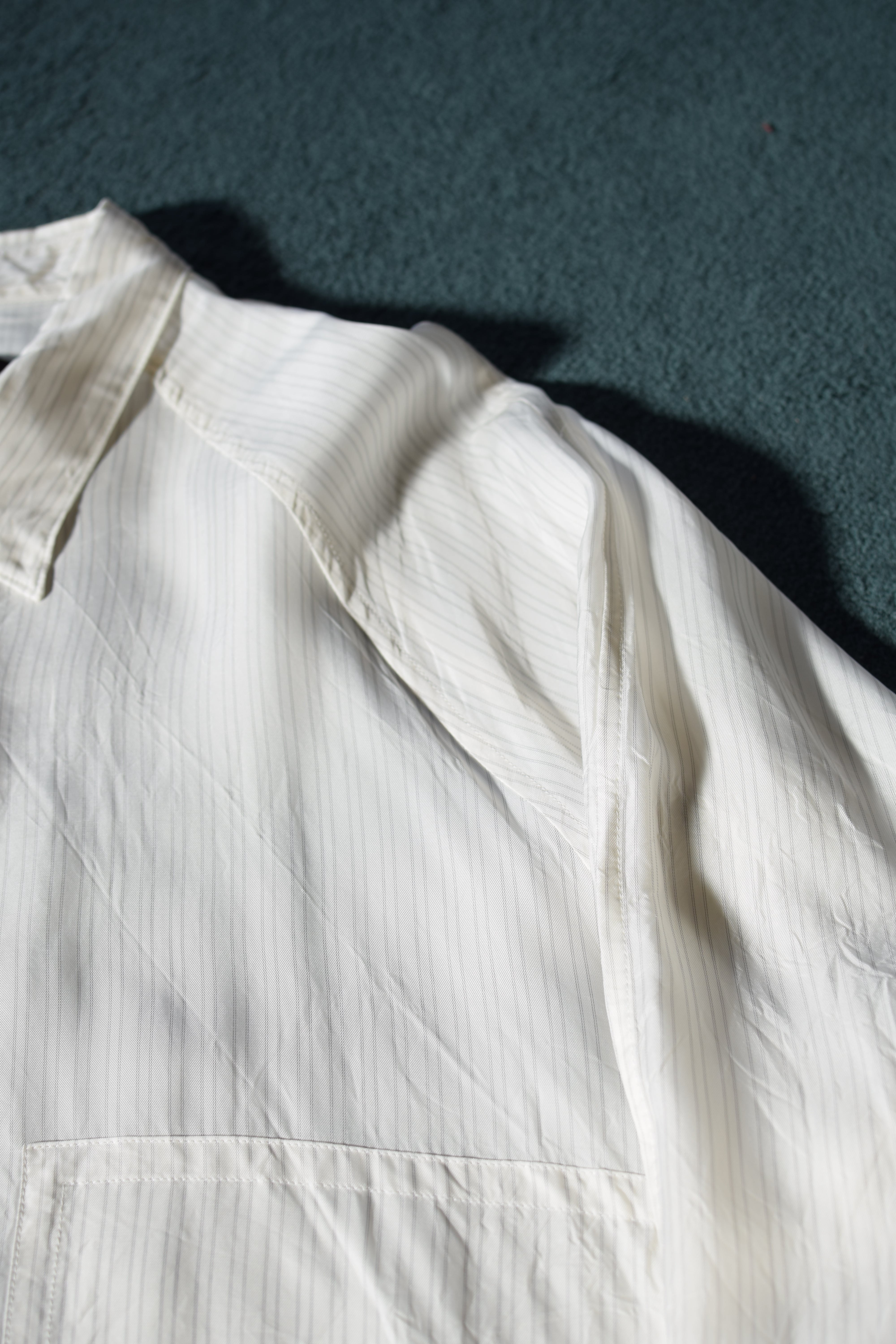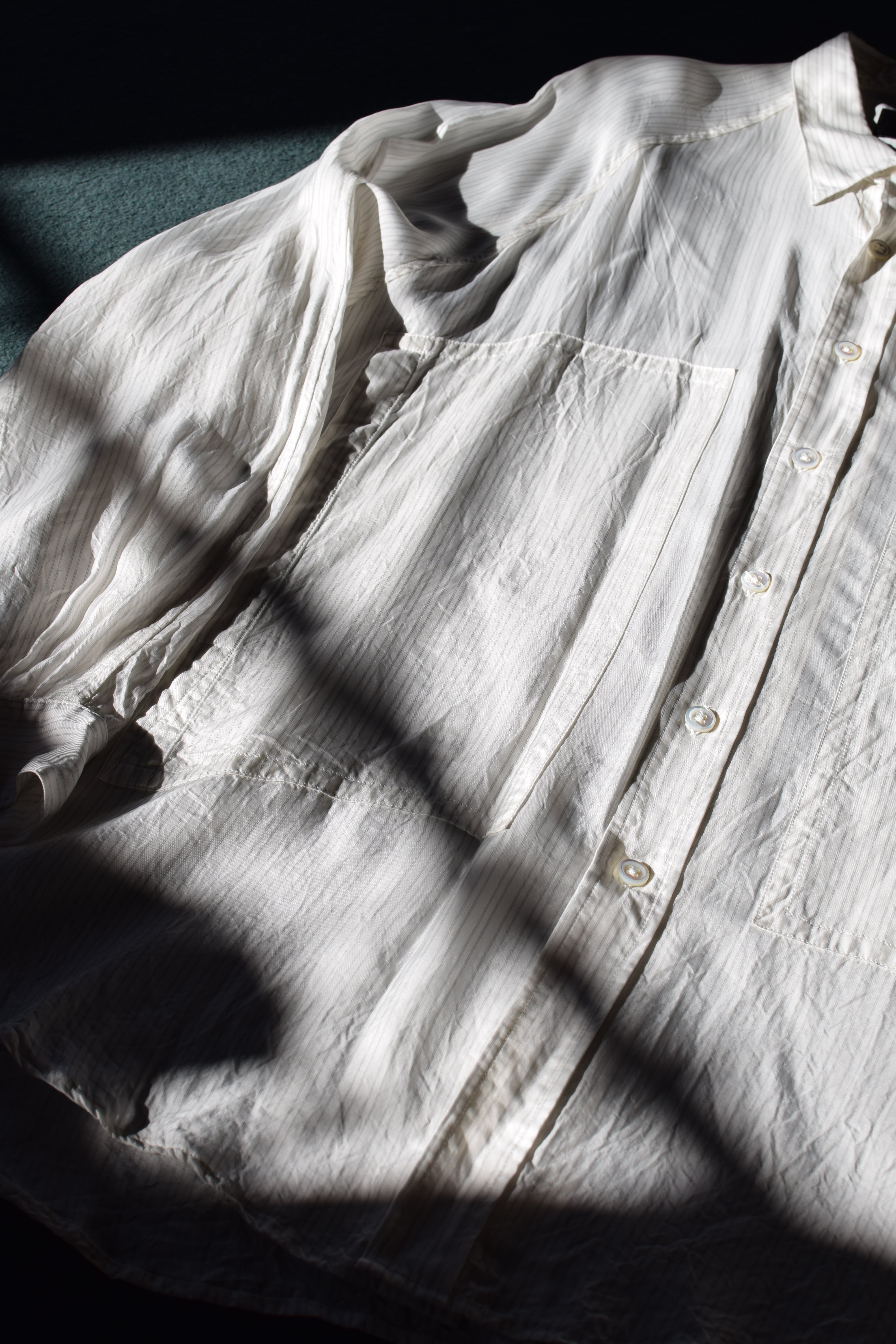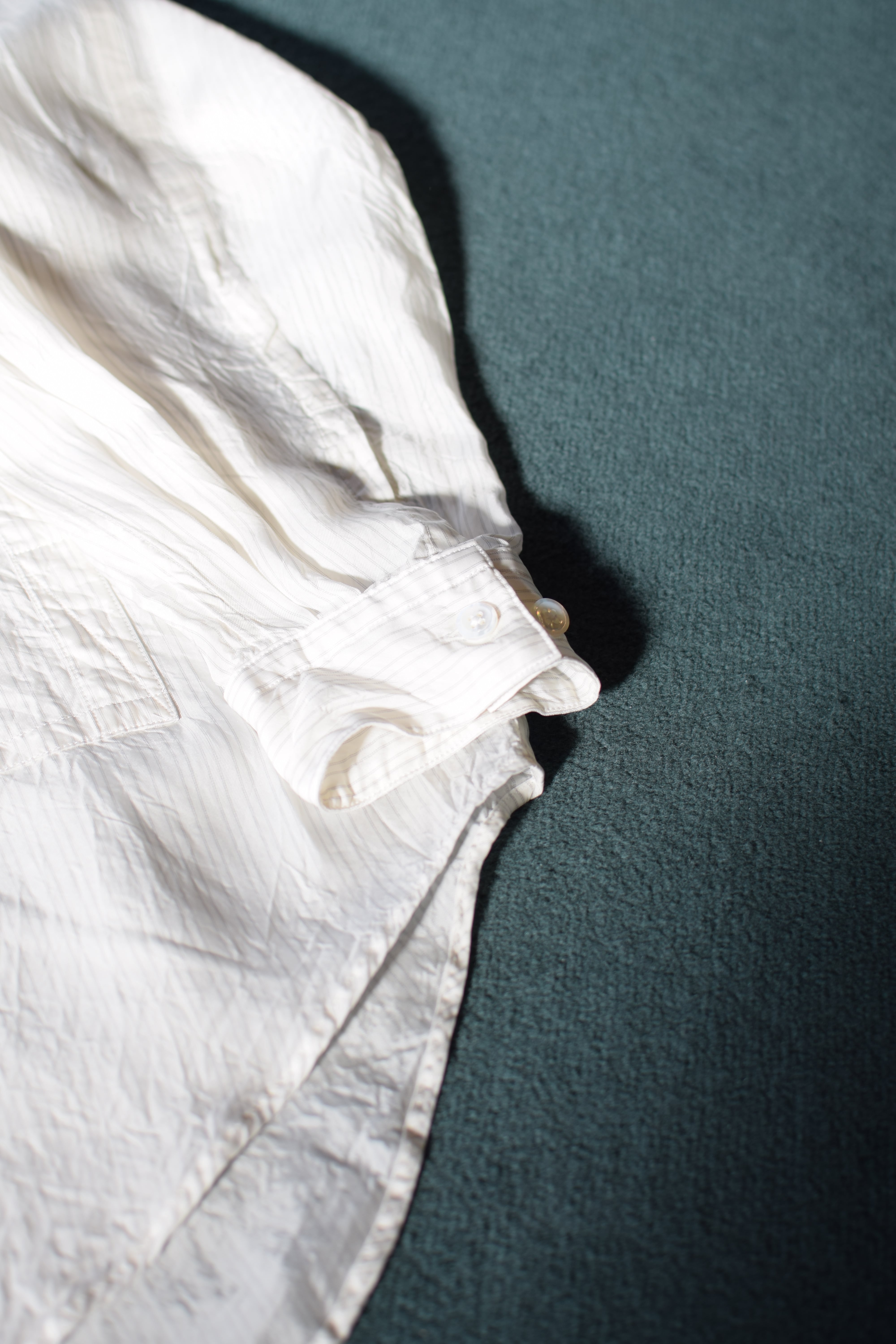 主張が強くなるはずのポケットが西川氏の計算されたパターンメイクとテキスタイル選びにより色気とミニマルな印象両方を兼ね備えた印象を受ける一枚。
