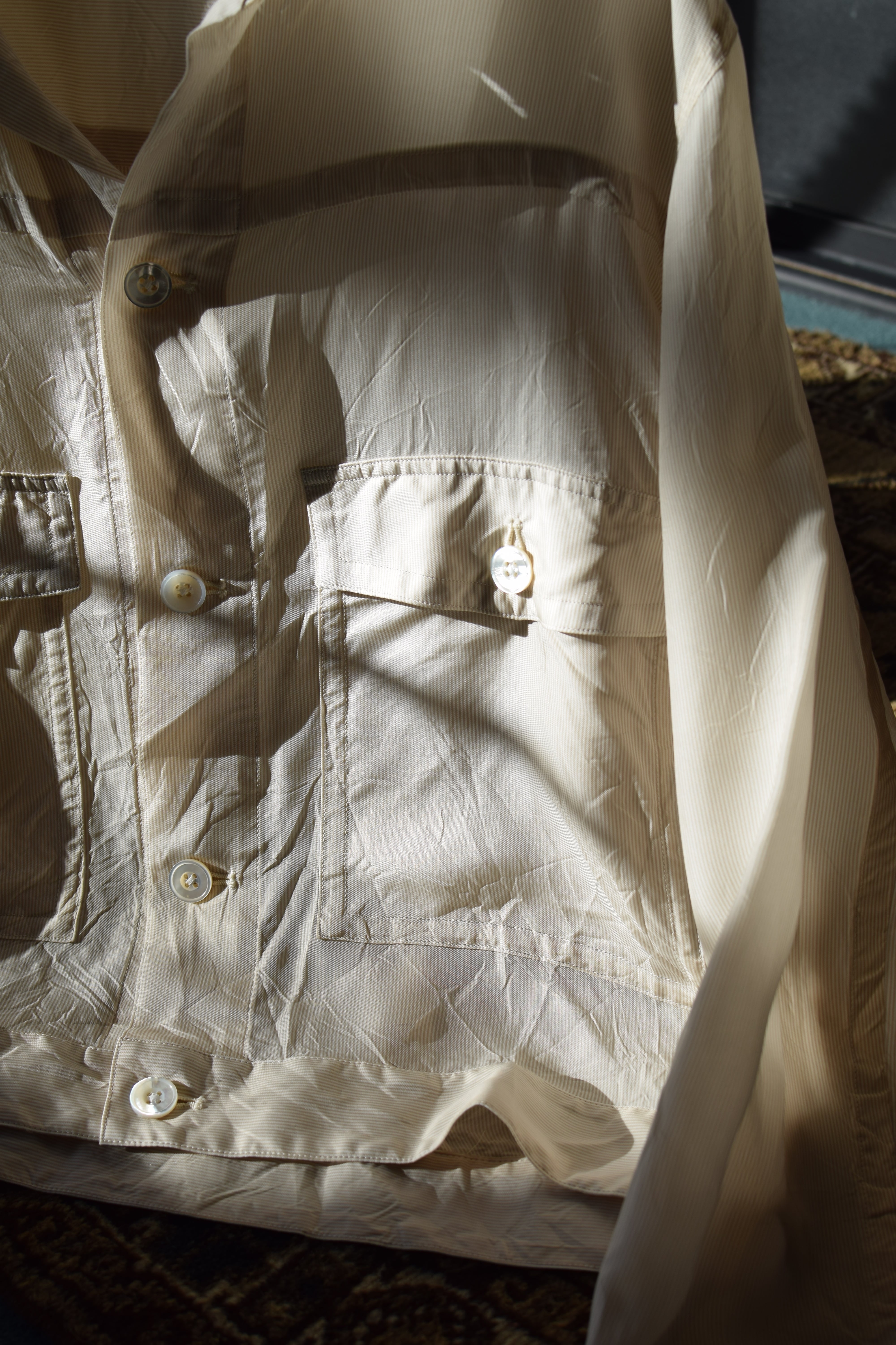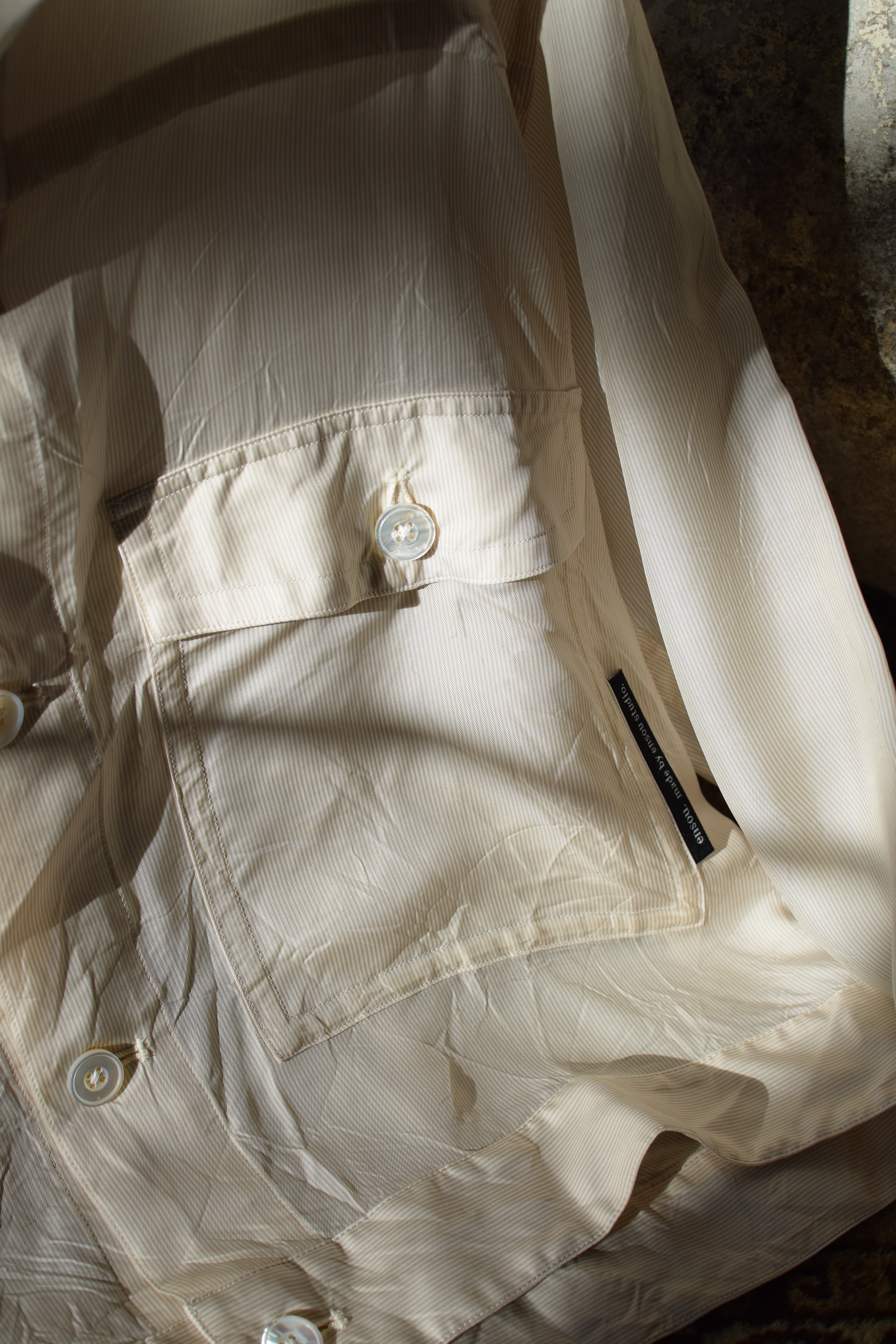 キュプラで仕上げられたこのモデルは、シャツというカテゴリに新しい感覚とスタイルをプラスしてくれるように感じます。