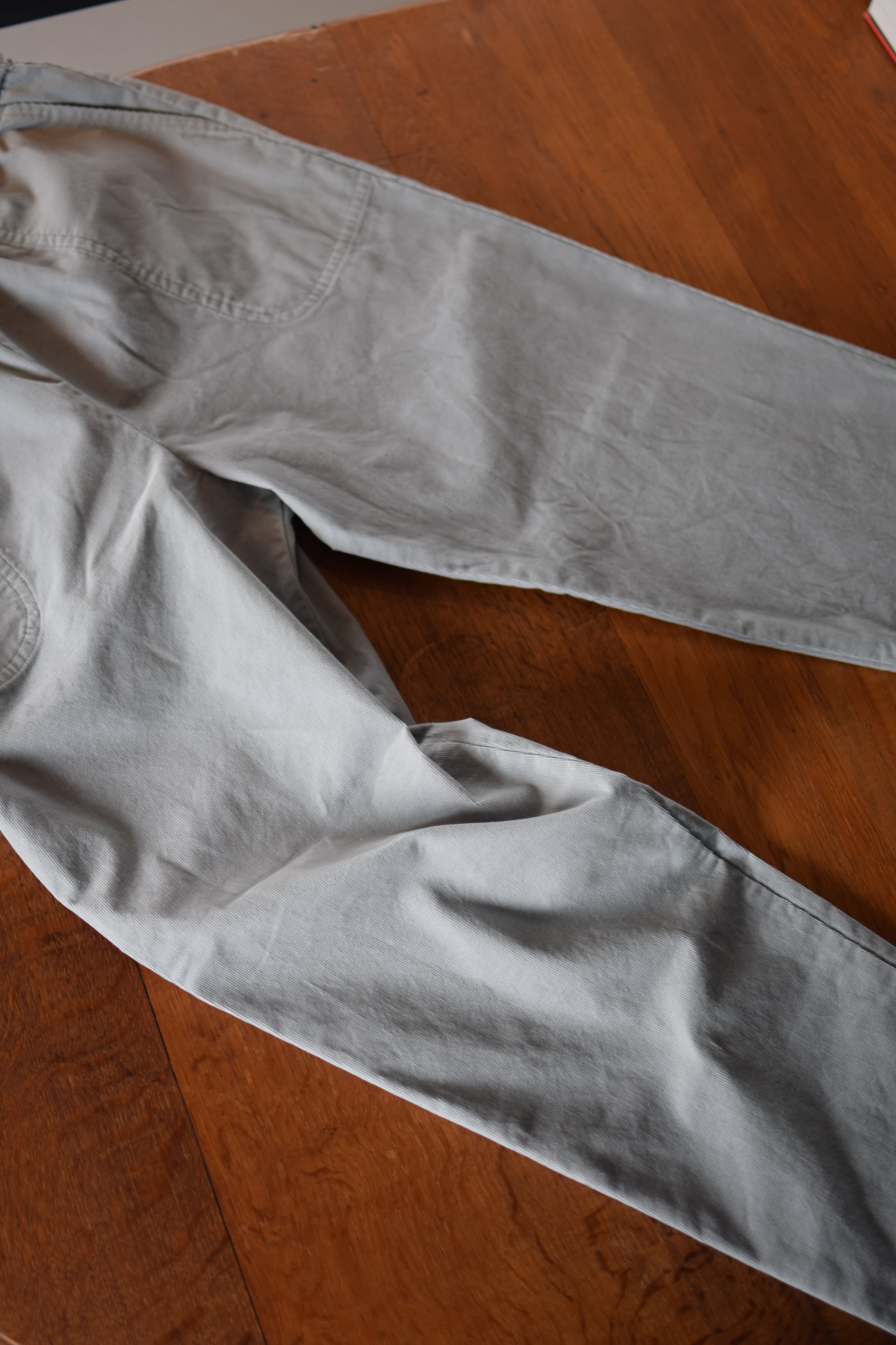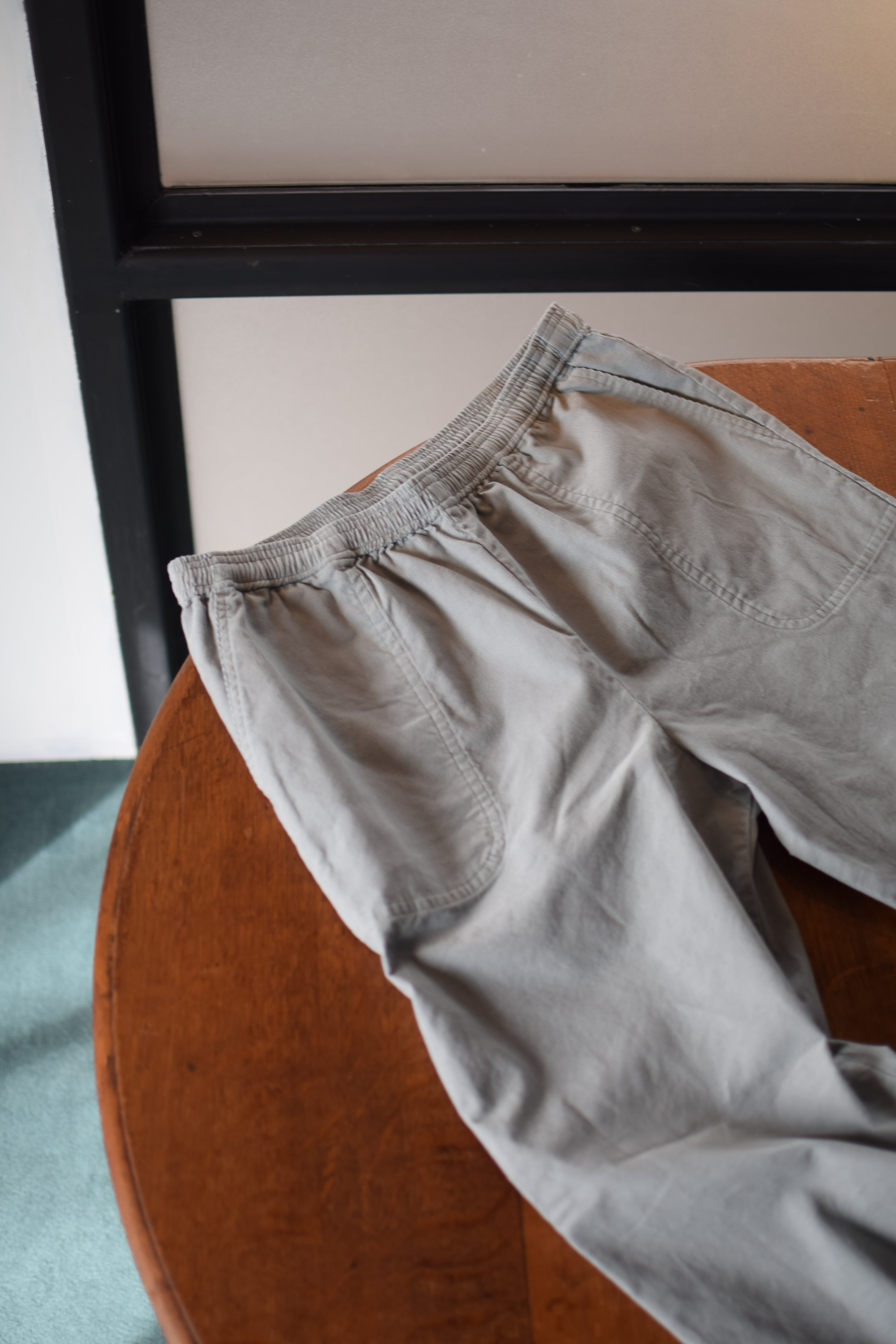 素材には細畝のコーデュロイを採用。シャツ地のように軽く、柔らかな肌触りで、長時間穿いてもストレスを感じにくい仕上がりです。コーデュロイ特有のさりげない光沢があり、ラフなイージーパンツでありながらどこか品のある表情を生み出します。