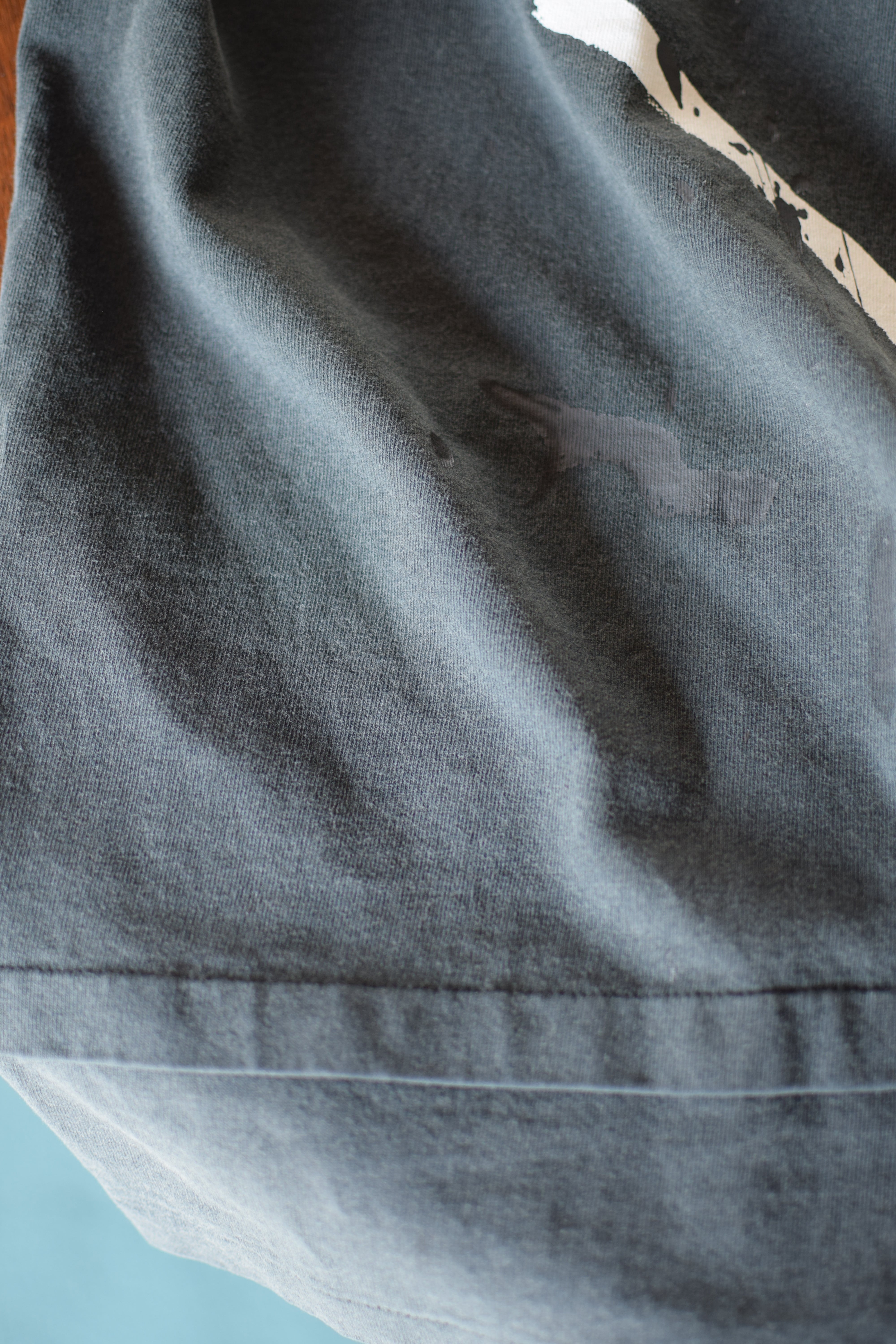 生地の表情とペイントのアクセントが一枚で雰囲気あるTシャツに仕上げています。